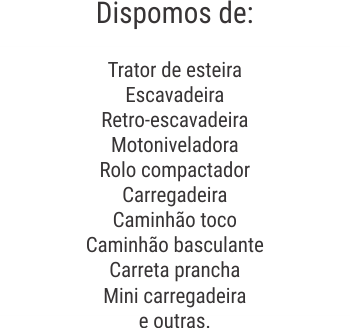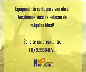 A N. Guilherme Terraplenagem também dispõe de máquinas pesadas para locação, primando pela satisfação e melhor resultado para seus clientes. Oferecemos diversas máquinas capazes de atender todos os tipos de solicitações, garantindo grande produtividade e qualidade no serviço executado.